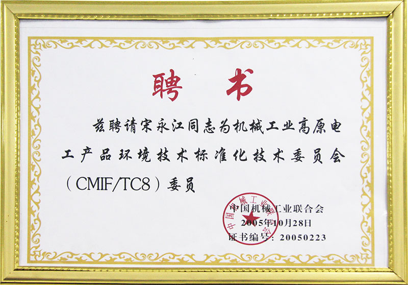 機械工業高原電工產品環境技術標準化技術委員會委員聘書