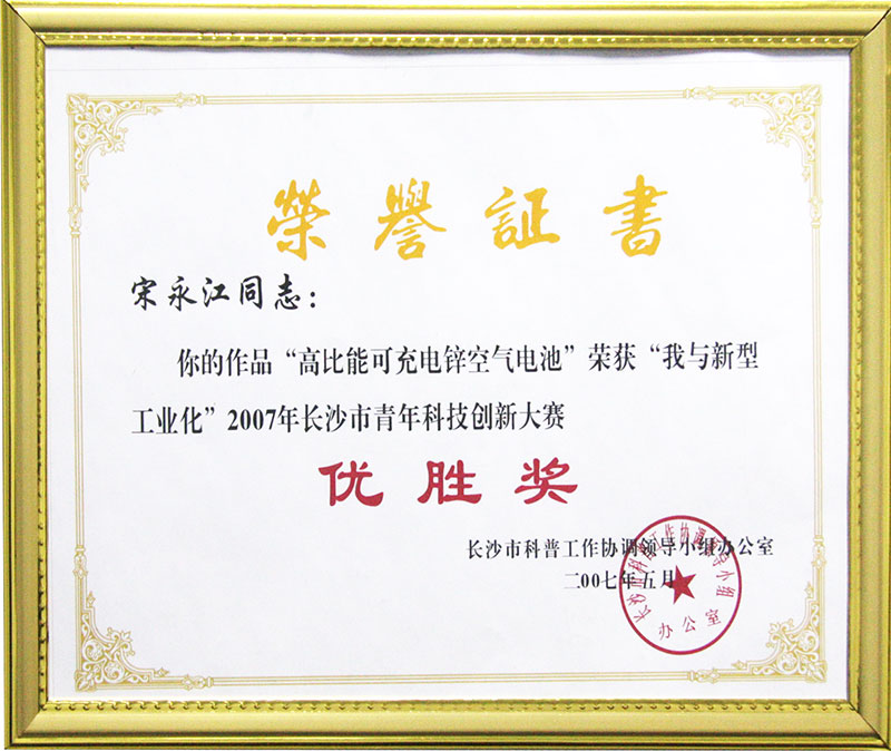 2007年長沙市青年科技創新大賽優勝獎