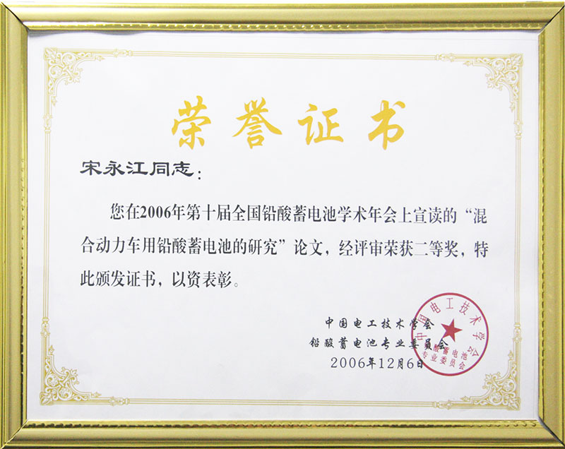 《混合動力車用鉛酸蓄電池的研究》論文二等獎