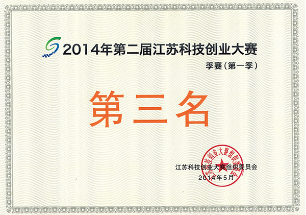 第二屆江蘇科技創業大賽季賽(第一季)第三名
