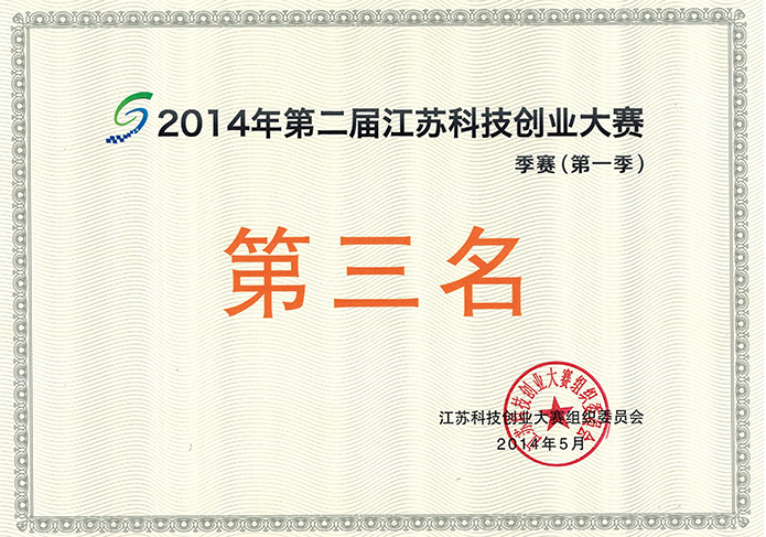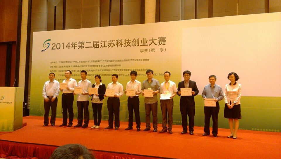2014年5月21日,我公司CEO宋永江先生攜研發中心主任羅云峰先生前往蘇州參加2014年第二屆江蘇科技創業大賽季賽(第一季)答辯,通過PPT演講及產品展示環節,我公司項目——新型綠色高比能薄膜復合材料鋅鎳蓄電池獲得大賽組委會的一致認可,榮獲第三名的好成績,并且直接晉級半決賽,力爭再創佳績。